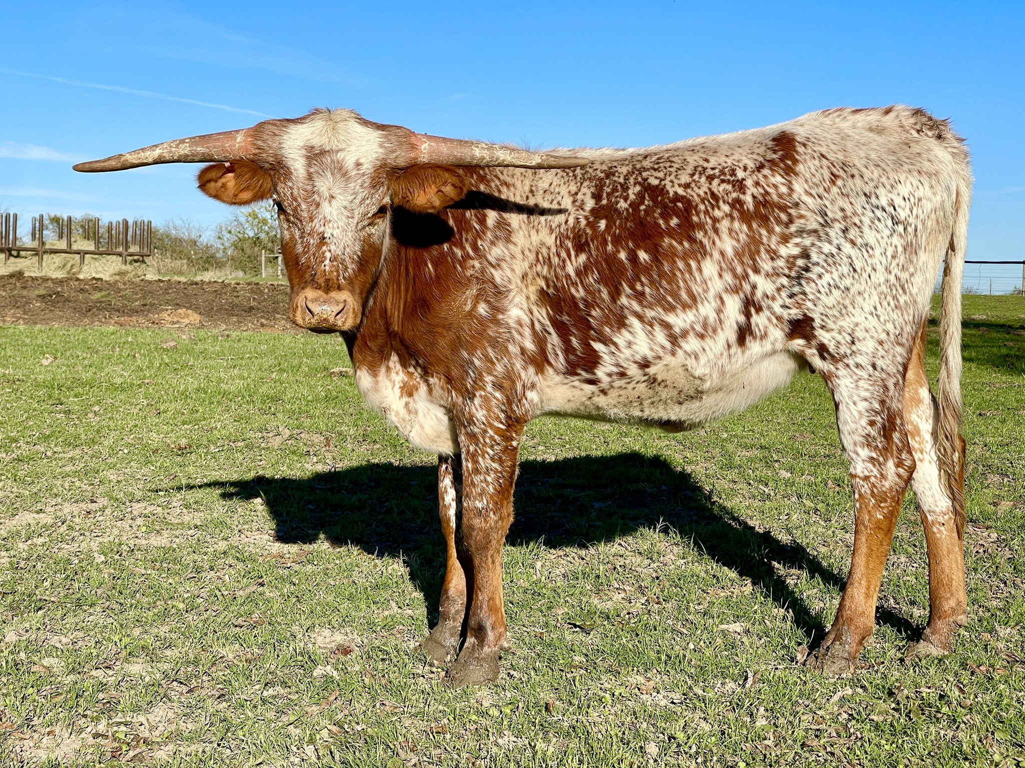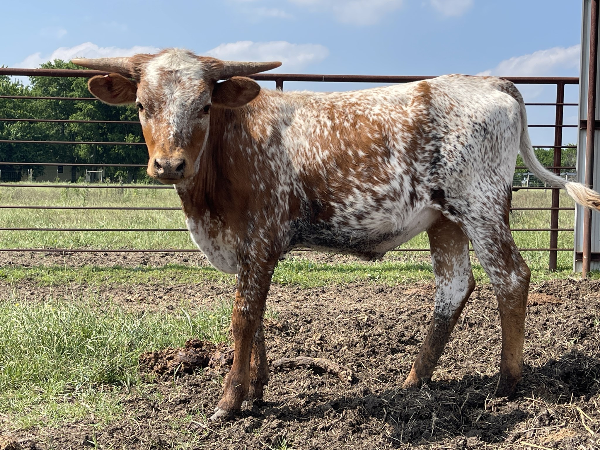 Would you look at that flash! Diva's pedigree is stacked with greatness, top and bottom! She is speckled all over with red and some black popping in places. She is correct, feminine, gentle, an easy keeper and could be a futurity competitor. We only had two heifers sired by Overachiever and both are knockouts! Check out her half sister PF Total Smoke Show.