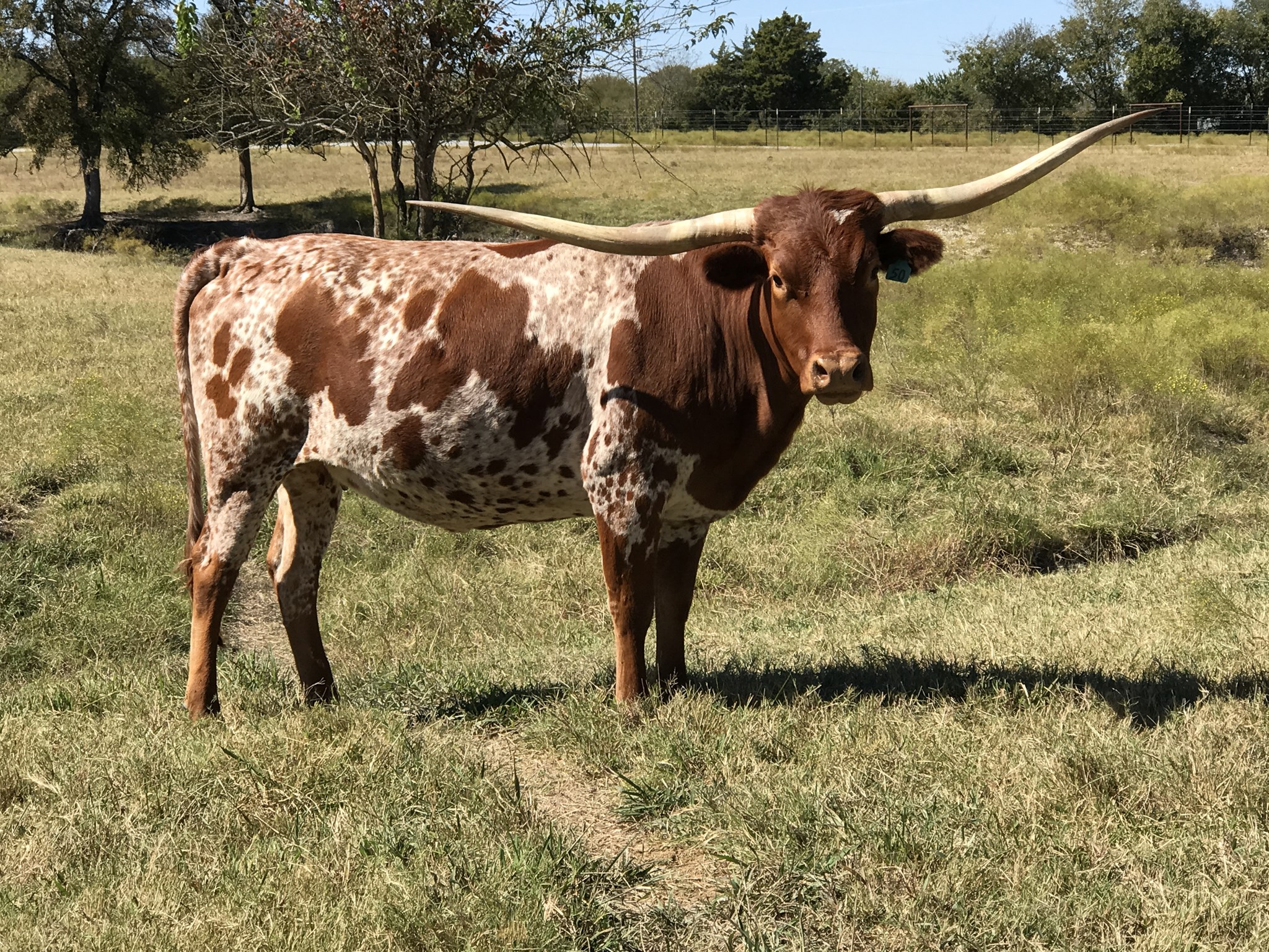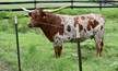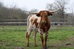 This Tejas Star daughter has produced some of the best quality heifers in our herd. Horns backwards and twisting, produces smooth bodied calves with tons of color.