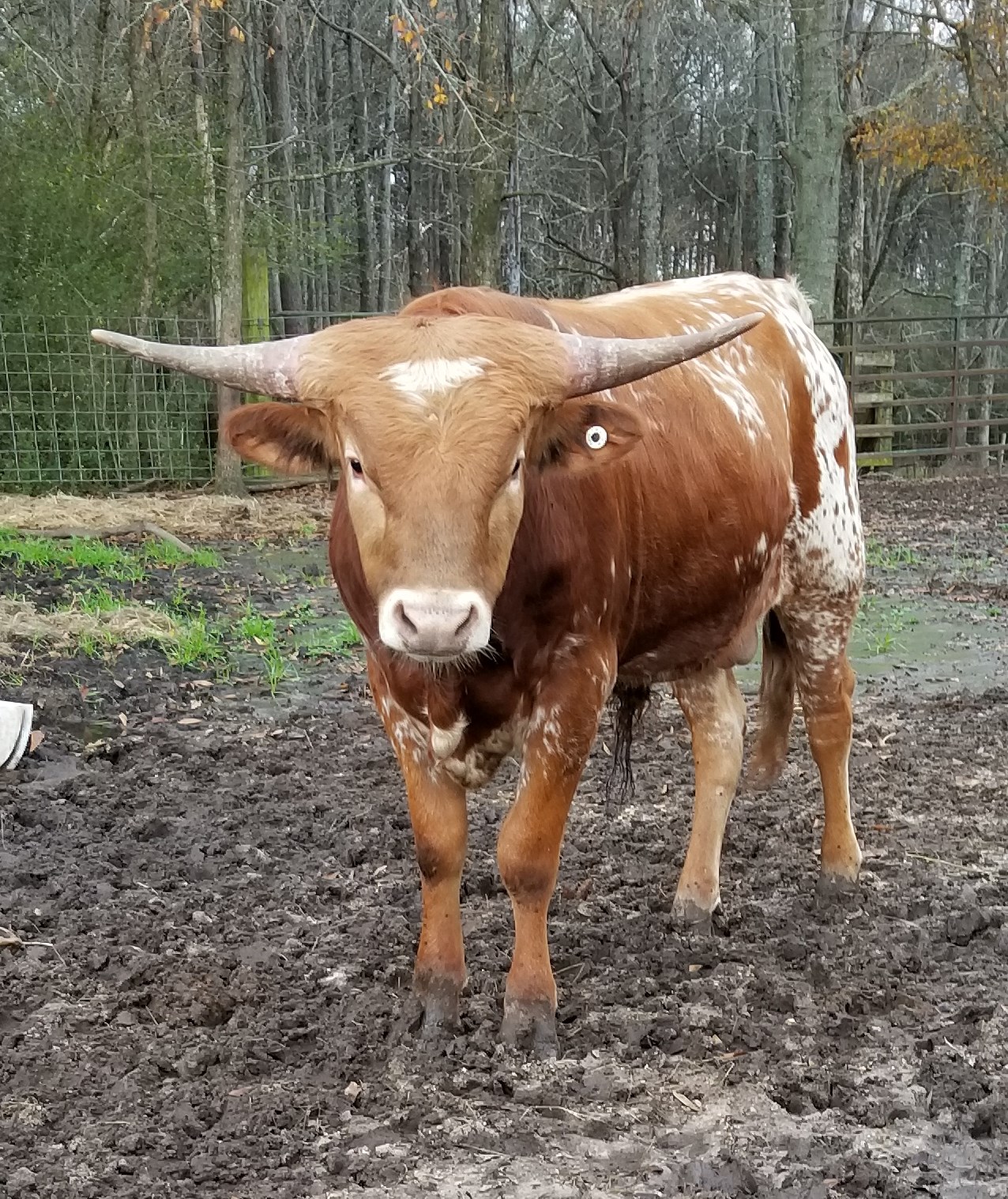Great young bull, big bodied and good horn direction.